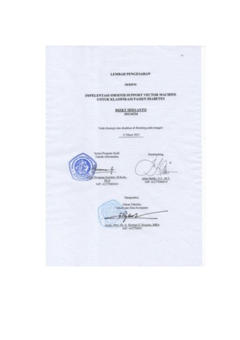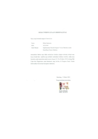 Sedyanto, Rizky (2021) Implementasi Smooth Support Vector Machine Untuk Klasifikasi Pasien Diabetes. Other thesis, Universitas Komputer Indonesia.