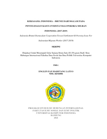 Latuo, Englen Fan Madetang (2021) Kerjasama Indonesia – Brunei Darussalam Pada Penyelesaian Kasus Overstay Bagi Pekerja Migran Indonesia (2017-2019). Other thesis, Universitas Komputer Indonesia.