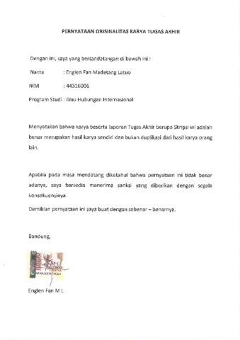 3. UNIKOM_Englen Fan M L_Surat Pernyataan Orisinalitas.pdf - Published Version