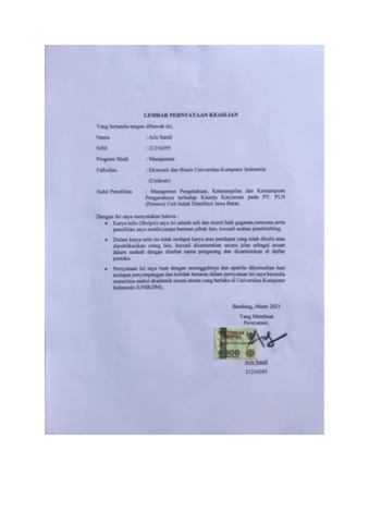 3. UNIKOM_ARIS SANDI_LEMBAR PERNYATAAN KEASLIAN.pdf - Published Version