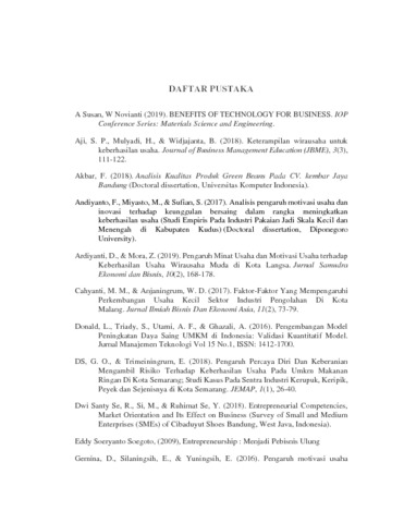 Tsani, Muhammad Rizqi (2021) Pengaruh Jiwa Kewirausahaan Dan Motivasi Usaha Terhadap Keberhasilan Usaha Sentra Nanas ”Si Madu”. Other thesis, Universitas Komputer Indonesia.