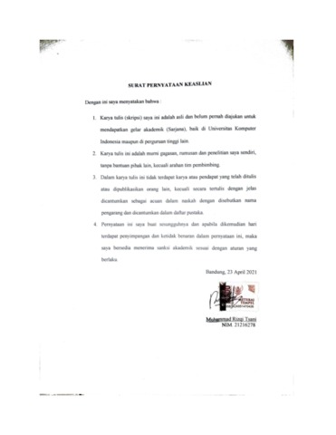 UNIKOM_Muhammad Rizqi Tsani_21216278_SURAT PENYATAAN KEASLIAN.pdf - Published Version