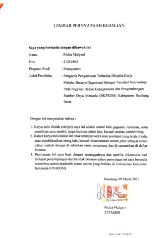 UNIKOM_Ricka Mulyani_Lembar Keaslian.pdf - Published Version