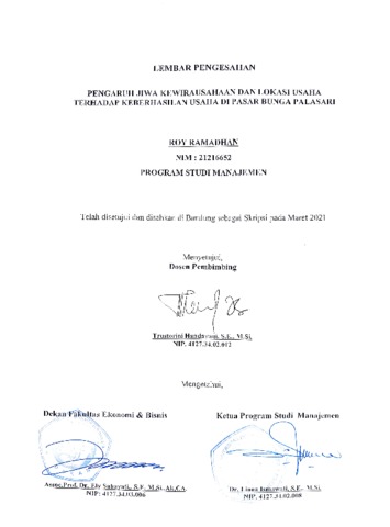 Ramadhan, Roy (2021) Pengaruh Jiwa Kewirausahaan Dan Lokasi Usaha Terhadap Keberhasilan Usaha Di Pasar Bunga Palasari Bandung. Other thesis, Universitas Komputer Indonesia.
