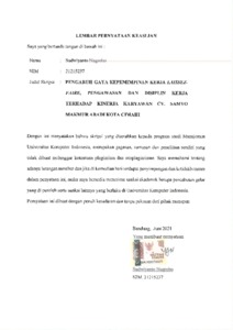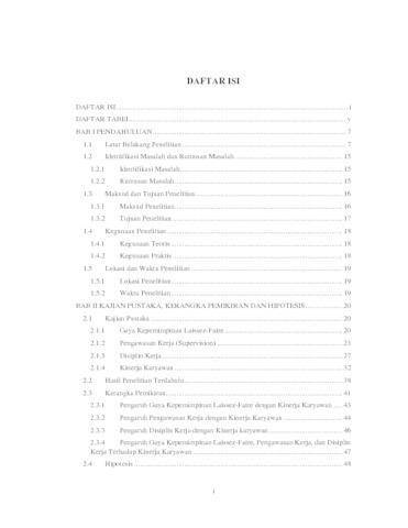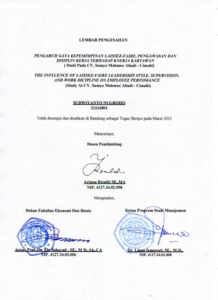 | Uncontrolled Keywords: | Gaya Kepemimpinan Laissez-Faire, Pengawasan dan Disiplin Kerja, Kinerja |