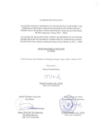 Muzaini, Muhamad Reza (2021) Analisis Tingkat Kesehatan Bank Dengan Metode Car Terhadap Return Saham Investor Pada Perusahaan Perbankan Di Bursa Efek Indonesia (Stusi Kasus Pada Bank Bumn Indonesia tahun 2015-2020). Diploma thesis, Universitas Komputer Indonesia.