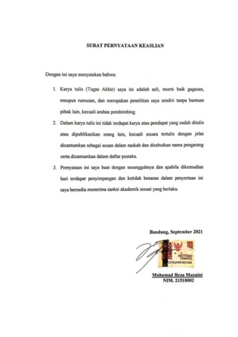 UNIKOM_Muhamad Reza Muzaini_surat pernyataan keaslian.pdf - Published Version