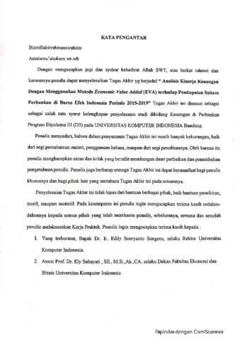 Syafitri, Yunita Nurjanah (2021) Analisis Kinerja Keuangan Dengan Menggunakan Metode Economic Value Added (Eva) Terhadap Pendapatan Saham Perbankan Di Pt Bursa Efek Indonesia Periode 2015-2019. Diploma thesis, Universitas Komputer Indonesia.