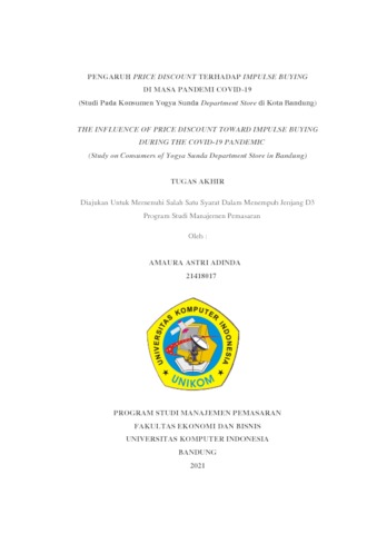 Tugas Akhir ini membahas mengenai pengaruh promosi penjualan yang dilakukan oleh Yogya Sunda Department Store yaitu price discount. Penelitian ini bertujuan untuk melihat dan mengetahui seberapa besar pengaruh yang ditimbulkan dalam strategi yang diterapkan Yogya Sunda Department Store untuk menarik impulse buying di masa pandemi Covid-19.Penelitian ini menggunakan metode deskriptif dan verifikatif dengan pendekatan kuantitatif. Variabel dependen dalam penelitian ini adalah price discount (harga diskon) sedangkan variable independent adalah impulse buying (pembelian tidak terencana). Sampel yang digunakan sebanyak 75 responden dengan menggunakan teknik sampel purposive sampling. Analisis yang digunakan adalah analisis regresi linear sederhana, analisis koefisien korelasi, analisis koefisien determinasi, dan pengujian hipotesis dengan menggunakan uji t.Hasil analisis berdasarkan penelitian pada Yogya Sunda Department Store menunjukkan bahwa price discount (harga diskon) berpengaruh signifikan terhadap impulse buying (pembelian tidak terencana).
