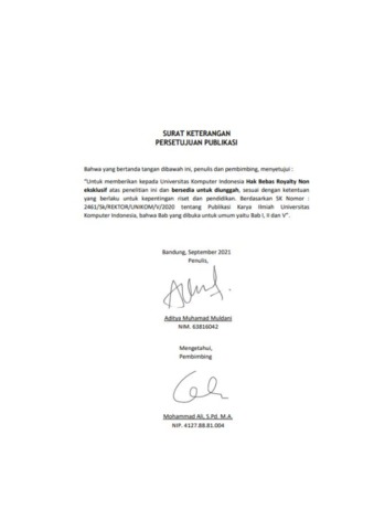 21. UNIKOM_Aditya M M_Lampiran 4_Surat Keterangan Persetujuan Publikasi.pdf - Published Version