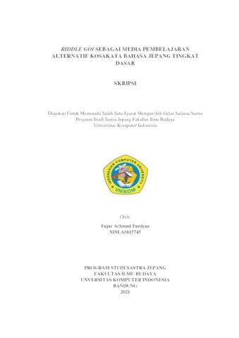 Fardyaz, Fajar Achmad (2021) Riddle Goi Sebagai Media Pembelajaran Alternatif Kosakata Bahasa Jepang Tingkat Dasar. Other thesis, Universitas Komputer Indonesia.