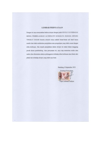 UNIKOM_Fajar Achmad Fardyaz_Lembar Pernyataan.pdf - Published Version