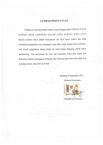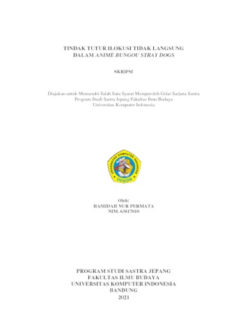Permata, Hamidah Nur (2021) Tindak Tutur Ilokusi Tidak Langsung Dalam Anime Bungou Stray Dogs. Other thesis, Universitas Komputer Indonesia.