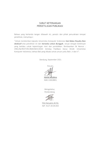 UNIKOM_HANIFA MUSLIMA_SURAT KETERANGAN PERSETUJUAN PUBLIKASI.pdf - Published Version