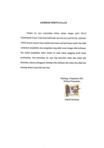 | Uncontrolled Keywords: | Karakterisasi dalam Novel, Nilai Feminisme, Kominami Akane, Novel Ankoku Joshi |