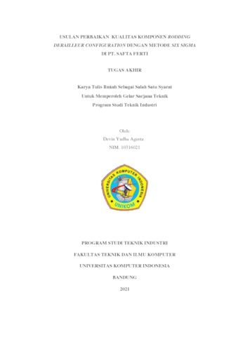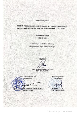 Agusta, Devin Yudha (2021) Usulan Perbaikan Kualitas Komponen Rodding Derailleur Configuration Dengan Metode Six Sigma Di PT. Safta Ferti. Other thesis, Universitas Komputer Indonesia.