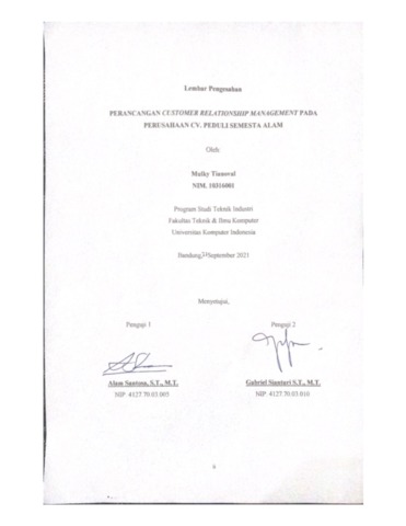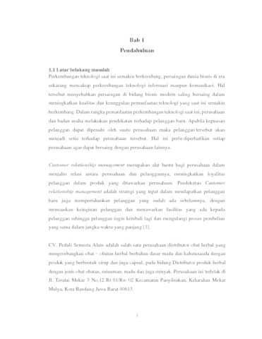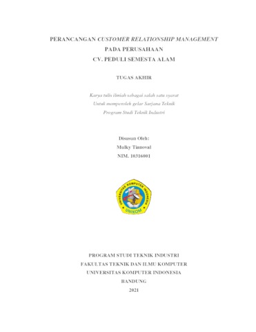 Tianoval, Mulky (2021) Perancangan Customer Relationship Management Pada Perusahaan CV. Peduli Semesta Alam. Other thesis, Universitas Komputer Indonesia.
