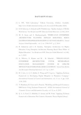 Handoko, Refah Istifahani (2021) Perancangan Enterprise Architecture Menggunakan Zachman Framework Di Unit Laboratorium Fakultas Ilmu Terapan Universitas Telkom. Other thesis, Universitas Komputer Indonesia.