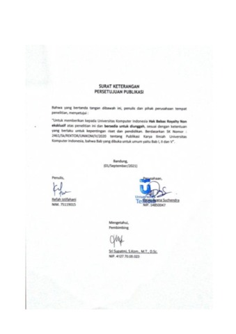 [17] UNIKOM_Refah Istifahani Handoko_Lampiran - Surat Keterangan Persetujuan Publikasi.pdf - Published Version