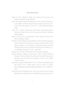 | Uncontrolled Keywords: | Sumber Daya Manusia (SDM), Pemberdayaan SDM, Kinerja, Kompetensi, Human Resources Information Systems (HRIS) |