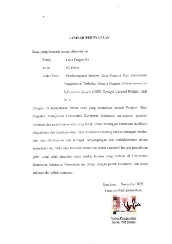 UNIKOM_YULIA PANGESTIKA_LEMBAR PERNYATAAN.pdf - Published Version