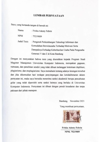 UNIKOM_FRISKA ADESTY FEBRIN_LEMBAR PERNYATAAN.pdf - Published Version