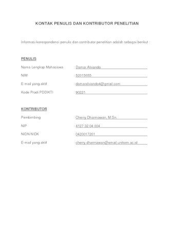 UNIKOM_Damar Alviando_KONTAK PENULIS DAN KONTRIBUTOR PENELITIAN.pdf - Published Version