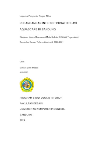 Muzaki, Mutiara Silmi (2021) Perancangan Interior Pusat Kreasi Aquascape Di Bandung. Other thesis, Universitas Komputer Indonesia.