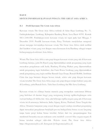 | Uncontrolled Keywords: | Pariwisata, The Great Asia Africa, Sign System. |