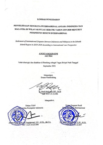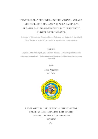 Anggraeni, Anggi (2021) Penyelesaian Sengketa Internasional Antara Indonesia Dan Malaysia Di Wilayah Pulau Sebatik Tahun 2019-2020 Menurut Perspektif Hukum Internasional. Other thesis, Universitas Komputer Indonesia.