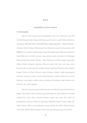 Gastrodiplomasi saat ini memainkan peranan yang sangat penting dalam membangun suatu hubungan dengan orang lain juga memper-erat hubungan bilateral maupun multilateral, dimana pendekatan ini dinilai menjadi sangat efektif karena saat ini pendekatan melalui soft power diplomacy lebih banyak diminati dibanding menggunakan hard power diplomacy. Pasar Indonesia diselenggarakan di Afrika Selatan oleh pemerintah Indonesia KBRI Pretoria, pasar Indonesia menjadi wadah gastrodiplomasi Indonesia terhadap Afrika Selatan sehingga masyarakat Afrika Selatan dapat mengenal lebih dekat mengenai Indonesia. Metode yang dipakai dalam penelitian ini menggunakan metode kualitatif. Data yang dikumpulkan adalah data yang diperoleh dari hasil wawancara juga literatur dan didukung oleh studi Pustaka, penelusuran data, jurnal, atau laporan dan dokumen dari instansi terkait seperti AGASI, dan KBRI Pretoria, dokumentasi dan observasi yang nantinya di analisis dengan pendekatan Ilmu Hubungan Internasional. Penelitian ini dilakukan dengan melewati tahap wawancara terhadap instansi terkait. Hasil data yang diperoleh menunjukan bahwa pasar indonesia yang diselenggarakan oleh KBRI Pretoria memiliki peranan yang penting dalam upaya memperkenalkan Indonesia di Afrika Selatan melalui gastrodiplomasi. Dimana Hal tersebut dapat dilihat dari berbagai faktor dan salah satunya adalah respon dari masyarakat Afrika Selatan sendiri, juga kerja sama yang terlaksana serta dapat dilihat dari peningkatan hubungan state-to-public Indonesia dengan Afrika Selatan dari berbagai aspek.