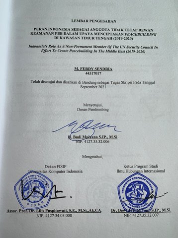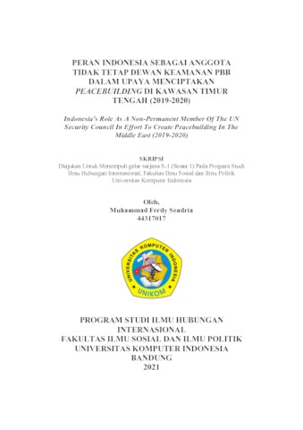 Sendria, Muhammad Ferdy (2021) Peran Indonesia Sebagai Anggota Tidak Tetap Dewan Keamanan Pbb Dalam Upaya Menciptakan Peacebuilding Di Kawasan Timur Tengah (2019-2020). Other thesis, Universitas Komputer Indonesia.