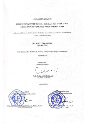 Maulidina, Sri Wahyu (2021) Diplomasi Maritim Indonesia Di Dalam Indian Ocean Rim Association (Iora) Menuju Poros Maritim Dunia. Other thesis, Universitas Komputer Indonesia.