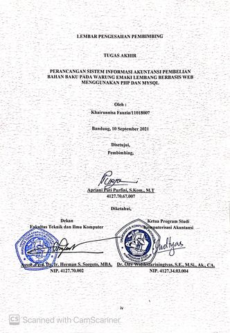 Fauzia, Khairunnisa (2021) Perancangan Sistem Informasi Akuntansi Pembelian Bahan Baku Pada Warung Emaki Lembang Berbasis Web Menggunakan PHP DAN MYSQL. Diploma thesis, Universitas Komputer Indonesia.