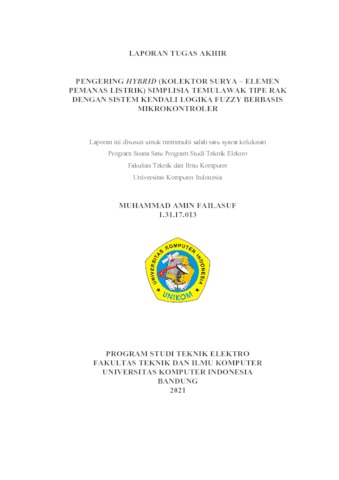 Failasuf, Muhammad Amin (2021) Pengering Hybrid (Kolektor Surya – Elemen Pemanas Listrik) Simplisia Temulawak Tipe Rak Dengan Sistem Kendali Logika Fuzzy Berbasis Mikrokontroler. Other thesis, Universitas Komputer Indonesia.