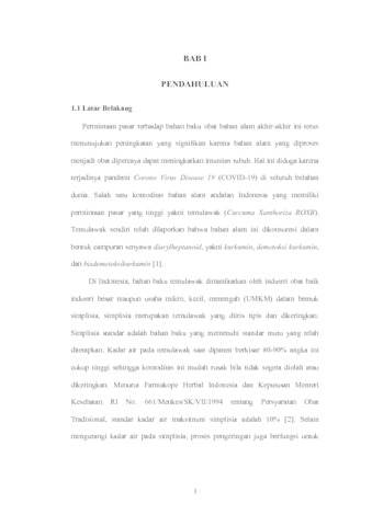 Di Indonesia, pada umumnya petani temulawak melakukan pengeringan dengan cara konvesional, yaitu dengan pengeringan memanfaatkan sinar matahari langsung, dimana cara ini membutuhkan waktu lebih dari 1 hari dan kadar air pada pengeringan temulawak konvensional tidak cukup memadai sehingga sulit untuk mencapai kadar air standar dan membuat hasil secara fisik visual tidak begitu baik. Untuk menghasilkan simplisia temulawak yang memenuhi kadar air standar dibuatlah alat pengering yang mampu menghasilkan pengeringan dengan performa yang lebih baik dibandingkan dengan pengeringan konvensional. Simplisia temulawak membutuhkan suhu pengering 50-60 °C , maka dari itu alat yang dibangun akan memanfaatkan sebuah mikrokontroler dengan program kendali logika fuzzy yang terintegrasi dengan sensor dan aktuator untuk mengatur suhu di dalam ruang pengering dengan stabil. Pada penelitian ini kendali logika fuzzy menggunakan 4 fungsi keanggotaan yang mampu mengatur suhu di ruang pengering selama proses pengeringan dengan waktu yang dibutuhkan untuk mencapai setpoint 4 menit. Alat pengering yang dibuat mampu mengeringkan simplisia temulawak sampai kadar air standar yaitu 9.9% dengan waktu yang dibutuhkan 420 menit, sedangkan pengeringan konvesional yang memerlukan waktu 2 hari dengan total waktu 600 menit. Simplisia temulawak yang dihasilkan dari pengeringan menggunakan alat yang dibuat lebih baik daripada pengeringan konvensional dengan ciri perbedaan warna simplisia temulawak jingga kekuningan dan masih memiliki aroma khas temulawak.