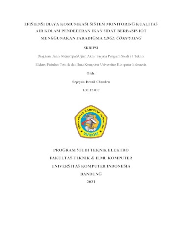 Chandra, Sepryan Ismail (2021) Efisiensi Biaya Komunikasi Sistem Monitoring Kualitas Air Kolam Pendederan Ikan Sidat Berbasis Iot Menggunakan Paradigma Edge Computing. Other thesis, Universitas Komputer Indonesia.