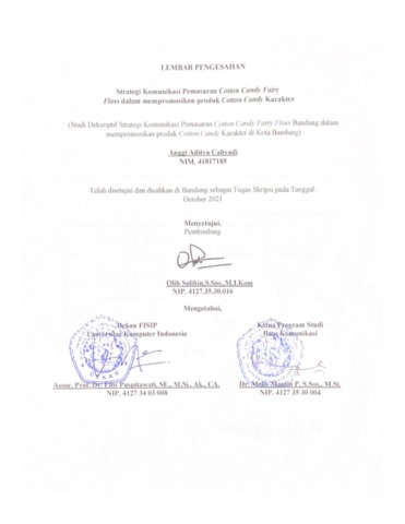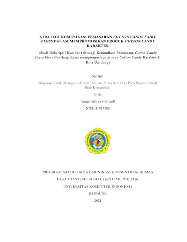Cahyadi, Anggi Aditya (2021) Strategi Komunikasi Pemasaran Cotton Candy Fairy Floss Dalam Mempromosikan Produk Cotton Candy Karakter. Other thesis, Universitas Komputer Indonesia.