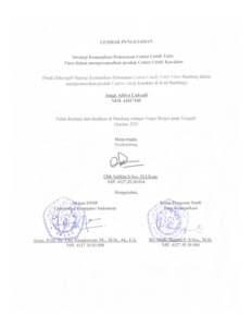 | Uncontrolled Keywords: | Strategi, Pemasaran, promosi, Cotton Candy Fairy Floss, Tujuan Pemasaran |