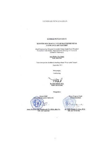 | Uncontrolled Keywords: | Kontruksi Makna, Kontruksi Realitas Sosial, Tanah, Jatiwangi Art Factory |