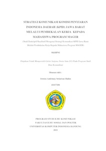 Halim, Jessica Andriany Setiawan (2021) Strategi Komunikasi Komisi Penyiaran Indonesia Daerah (Kpid) Jawa Barat Melalui Pembekalan Kerja Kepada. Other thesis, Univeristas Komputer Indonesia.