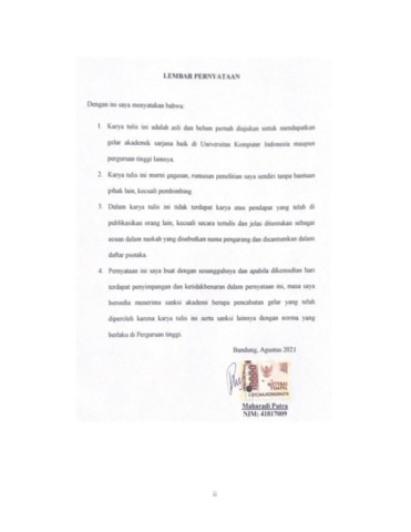 UNIKOM_41817009_Maharadi Putra_LEMBAR PERNYATAAN.pdf - Published Version