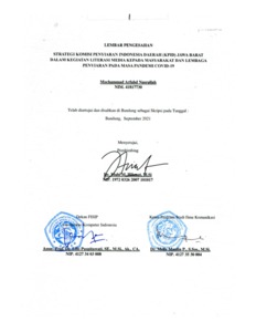 | Uncontrolled Keywords: | : Strategi , literasi media, Masyarakat, Lembaga Penyiaran, KPID Jawa Barat. |