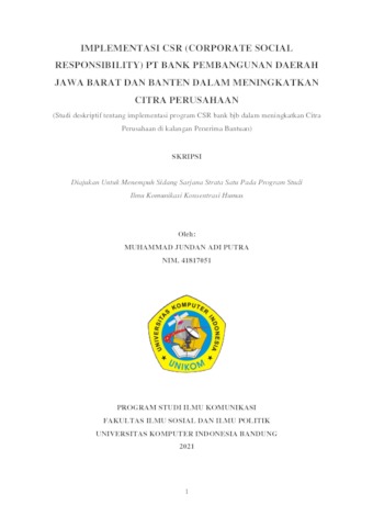 Putra, Muhammad Judan Adi (2021) Implementasi Csr (Corporate Social Responsibility) Pt Bank Pembangunan Daerah Jawa Barat Dan Banten Dalam Meningkatkan Citra Perusahaan. Other thesis, Univeristas Komputer Indonesia.