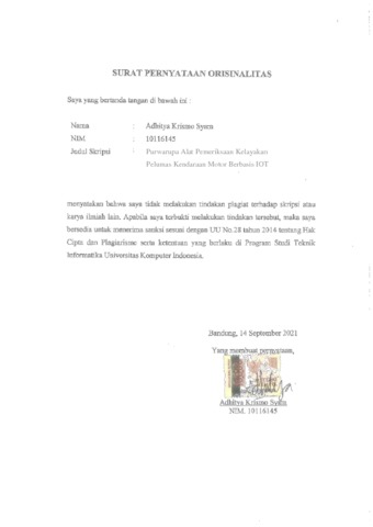 UNIKOM_AdhityaKrismoSyam_Surat Pernyataan Orisinalitas.pdf - Published Version