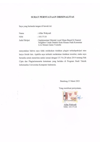UNIKOM_ALFAN WAHYUDI_SURAT KETERANGAN ORISINALITAS.pdf - Published Version