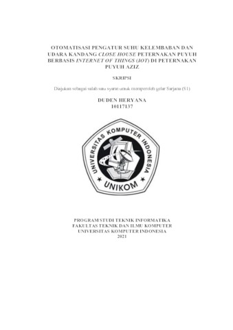 Heryana, Duden (2021) Otomatisasi Pengatur Suhu Kelembaban Dan Udara Kandang Close House Peternakan Puyuh Berbasis Internet Of Things (Iot) Di Peternakan Puyuh Aziz. Other thesis, Univeristas Komputer Indonesia.