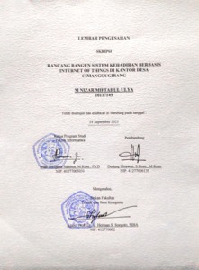 Ulya, Nizar Miftahul M (2021) Rancang Bangun Sistem Kehadiran Berbasis Internet Of Things Di Kantor Desa Cimanggugirang. Other thesis, Univeristas Komputer Indonesia.