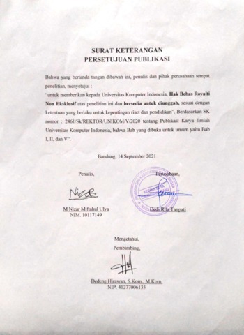 UNIKOM_M NIZAR MIFTAHUL ULYA_SURAT KETERANGAN PUBLIKASI.pdf - Published Version