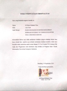 UNIKOM_M NIZAR MIFTAHUL ULYA_SURAT KETERANGAN ORISINALITAS.pdf - Published Version